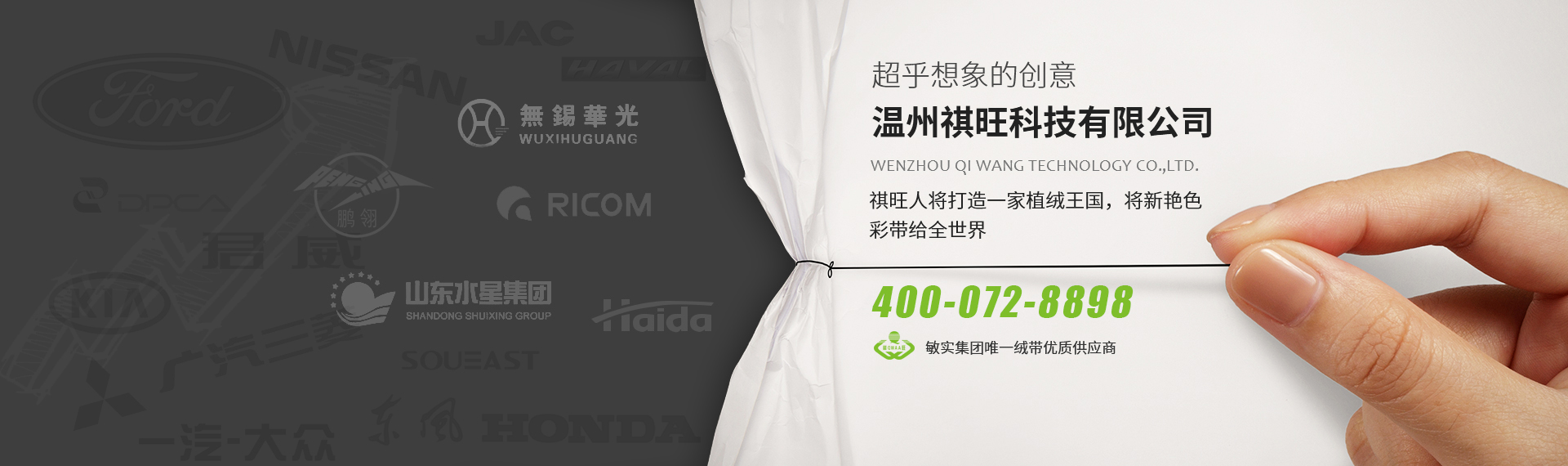 拥有多项专利和技术认证,并得到敏实集团认可,敏实集团唯一绒带优质供应商